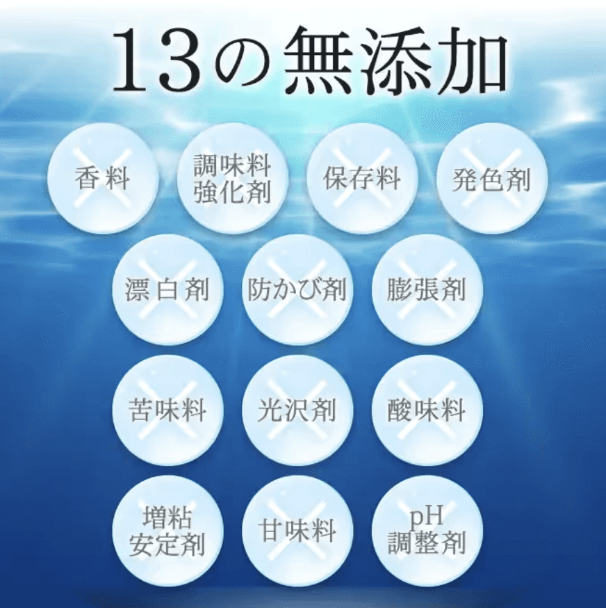 ※無添加は香料・着色料・保存料・発色剤・漂白剤・防かび剤・膨張剤・苦味料・光沢剤・酸味料・増粘安定剤・甘味料・pH調整剤
