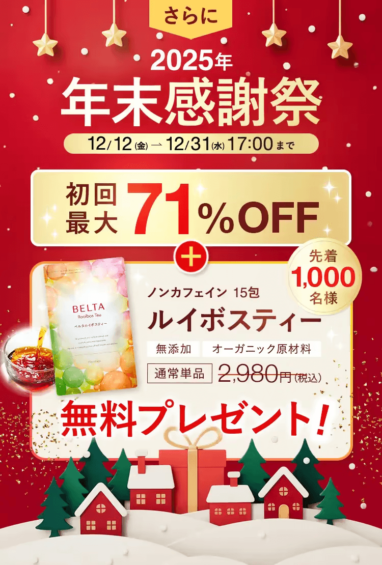 12/31まで!通常2,980円(税込)のルイボスティー15包プレゼント中!