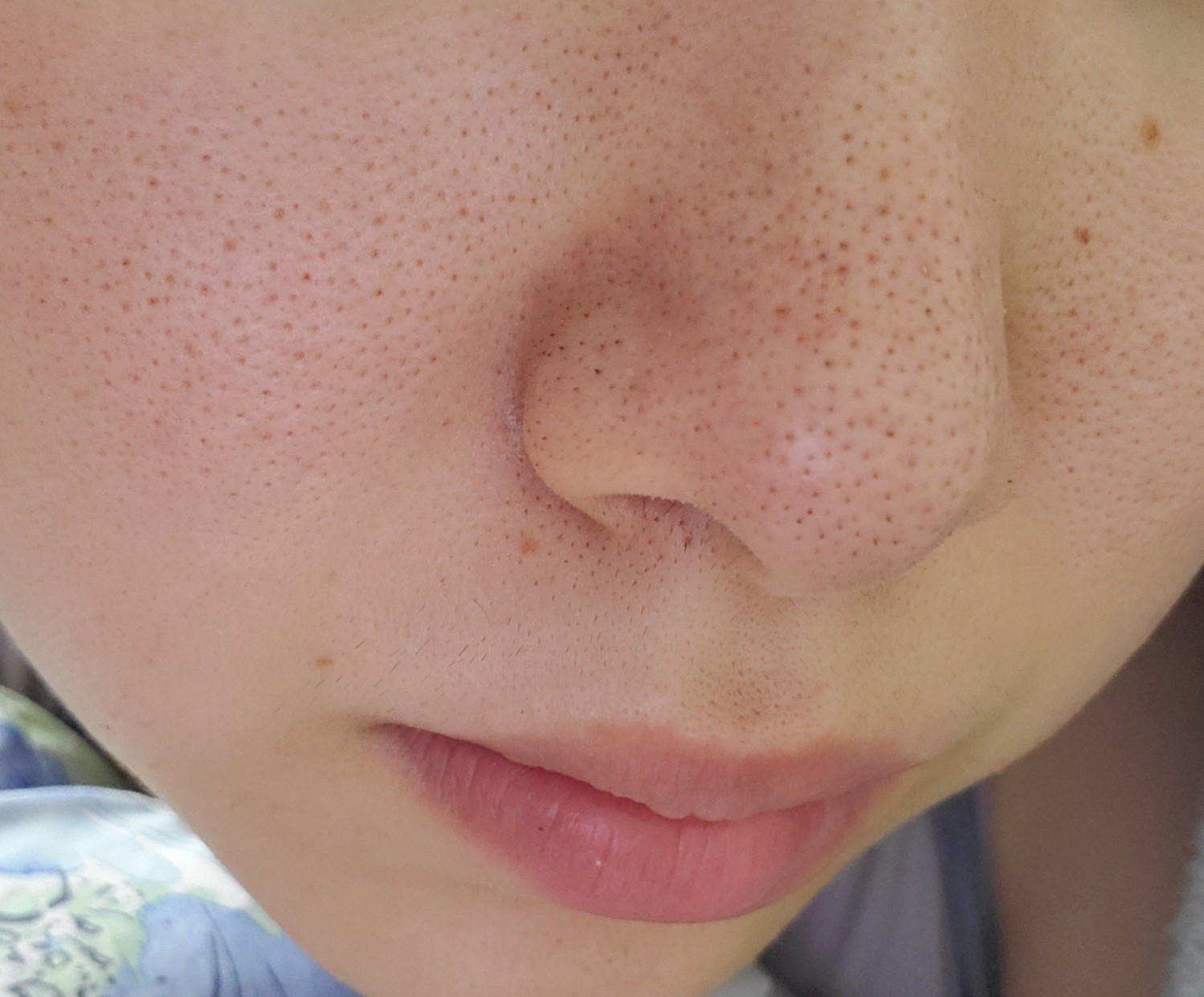 小鼻の毛穴も綺麗でツルツル、