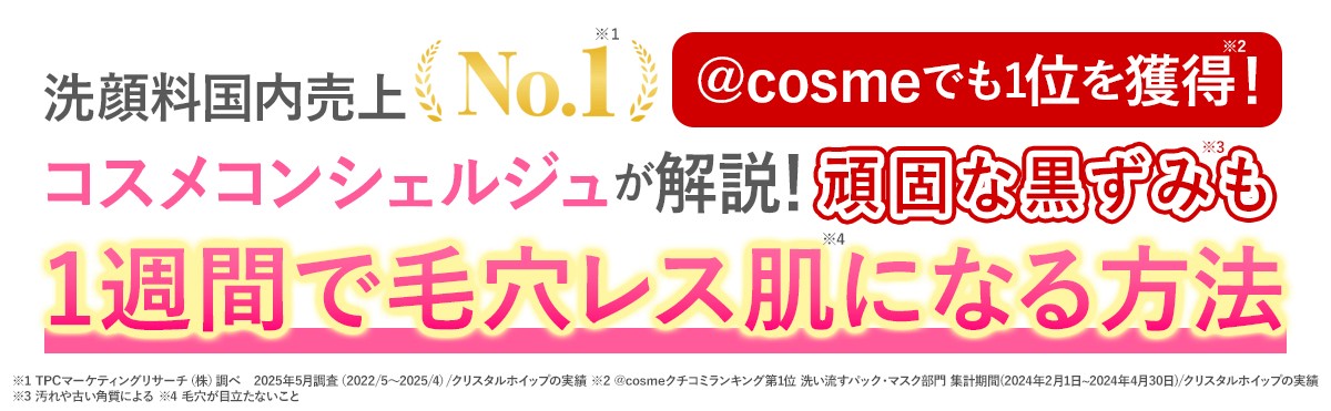 ※@cosmeクチコミランキング第1位 洗い流すパック・マスク部門 集計期間(2024年2月1日~2024年4月30日)/クリスタルホイップの実績
