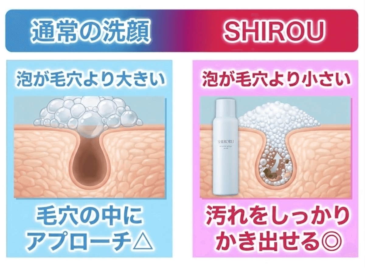 毛穴より小さい泡で